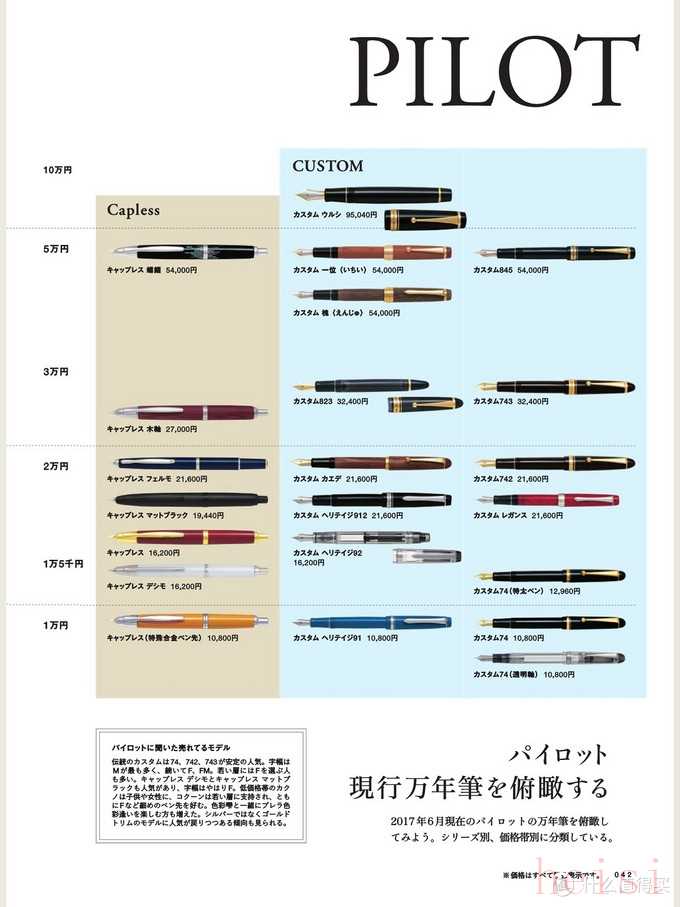 圖1為百樂Capless系列和Custom系列。圖2為其它量產款產品。表中產品有疑問或指正,歡迎在評論區(qū)交流。