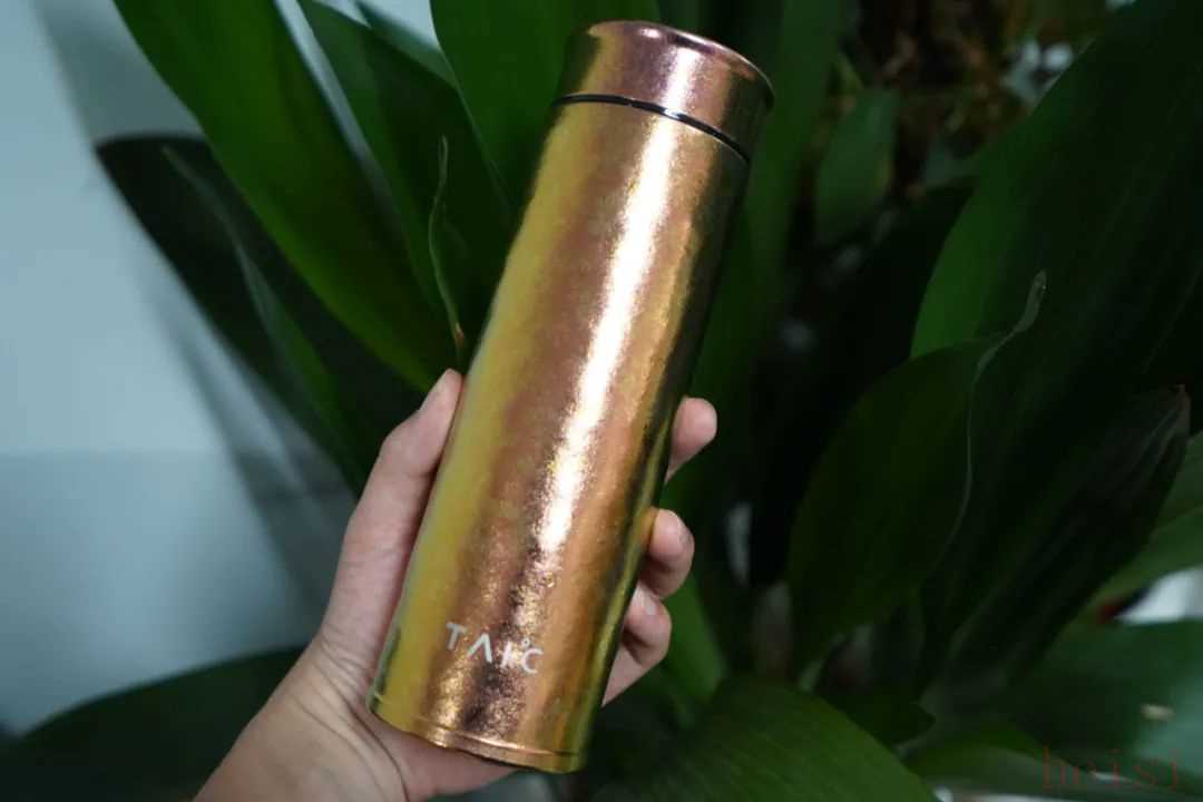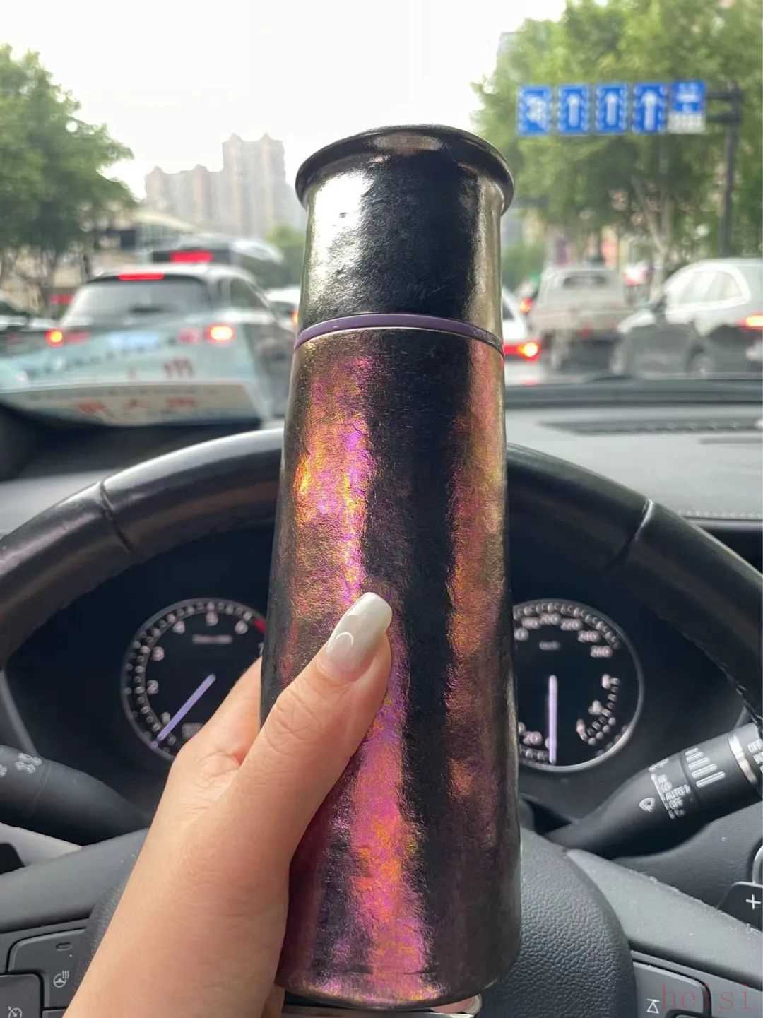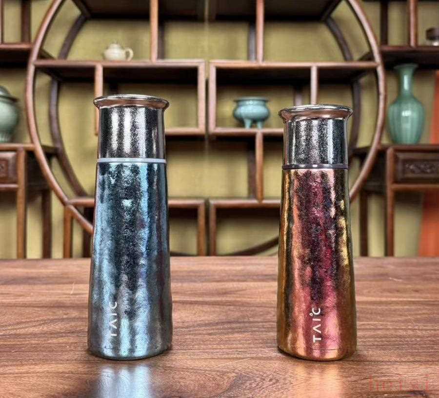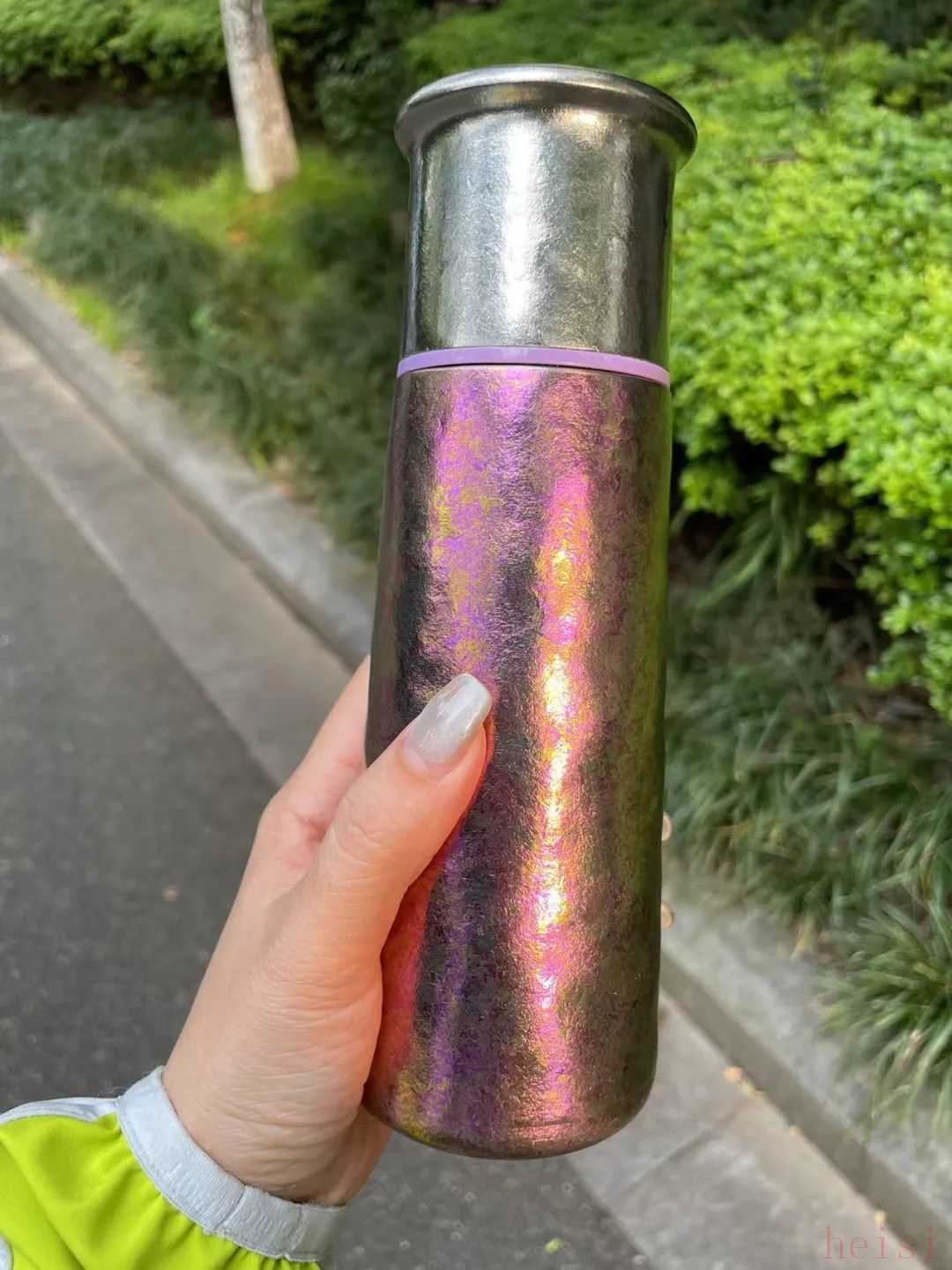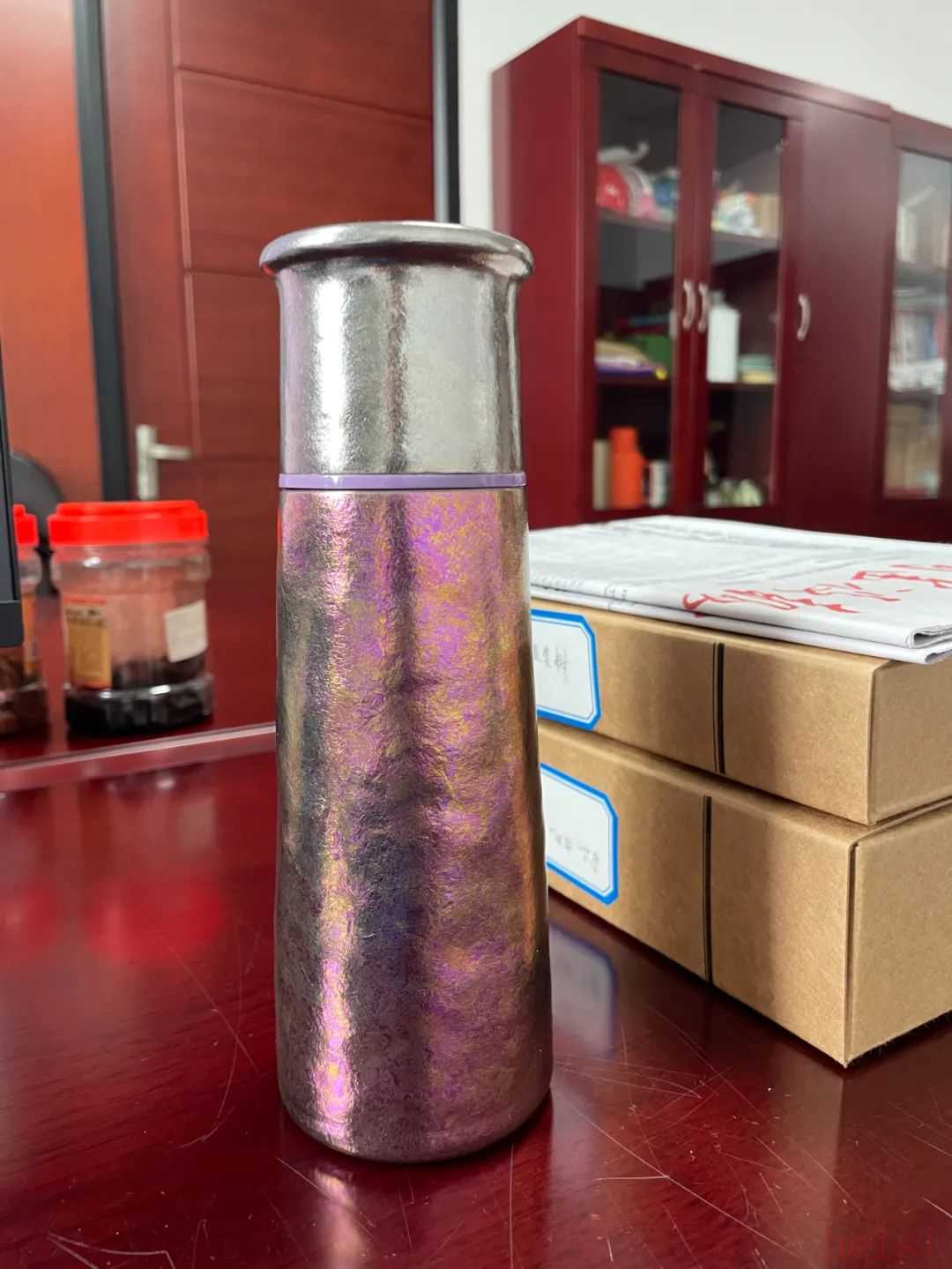 杯體手工打制,里外全是鈦:內(nèi)膽鈦,可以保鮮抗菌;杯身的鈦,在不同溫度的氧化下,顏色絢麗多彩,有種莫奈畫作的視覺感。可以說內(nèi)外兼修。