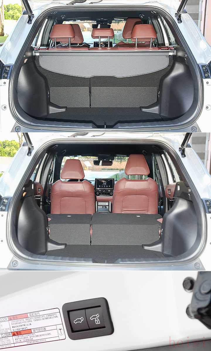 卡羅拉 Cross 前座椅采用與卡羅拉相近的造型配置,在此回試駕的 Hybrid 旗艦車型上則具備了駕駛座 8 向電動調(diào)整機能。后座椅部分則具備了傾角兩段可調(diào)的設(shè)計,而透過身高 174 公分的編輯實際乘坐下,膝部具備約一個半拳頭的空間,頭部則拜方正的車頂造型之賜,有著達到一個拳頭及四指幅的寬闊空間表現(xiàn)。后座椅具備 6/4 分離可向前摺疊的設(shè)計,行李廂則具備 487 公升的容積,較卡羅拉增加 17 公升,Hybrid 旗艦車型亦具備了腳踢感應(yīng)式電動尾門,可提升置物的便利性表現(xiàn)。
