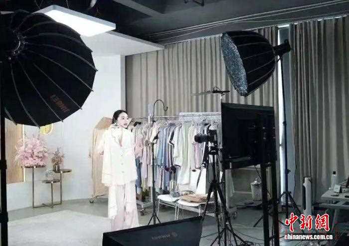嘉興一服裝公司直播間里,主播在展示新品。嘉興市委宣傳部供圖