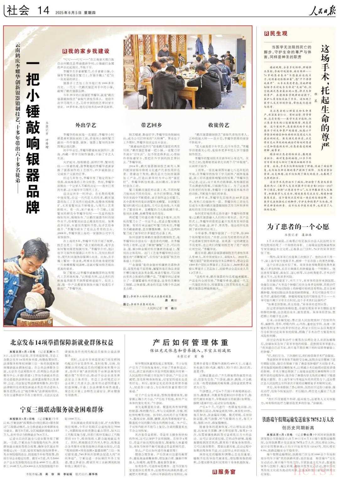 截至目前,鶴慶縣銀器鍛制技藝代表性傳承人有80人,其中國家級2人、省級8人。2022年,“鶴慶銀匠”榮獲國家級勞務(wù)品牌稱號,帶動全縣1500多戶居民從事銀手工藝品加工,5600多人直接從事銀手工藝品加工,間接帶動全縣從業(yè)人員1.2萬多人。