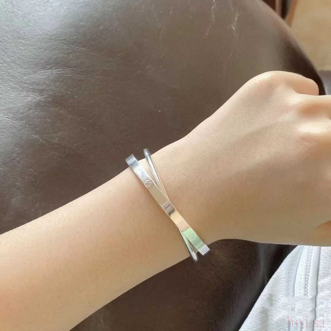 雙層交織的手鐲,雖然沒有雙環(huán)手鐲那么個(gè)性。卻也有著獨(dú)特的精致之處,兩層圓環(huán)交織的銀手鐲,又做了拋光的處理,亮度自然會(huì)更高一些。而且開口的設(shè)計(jì),可以更自然地調(diào)節(jié)手鐲的寬度,方便佩戴。