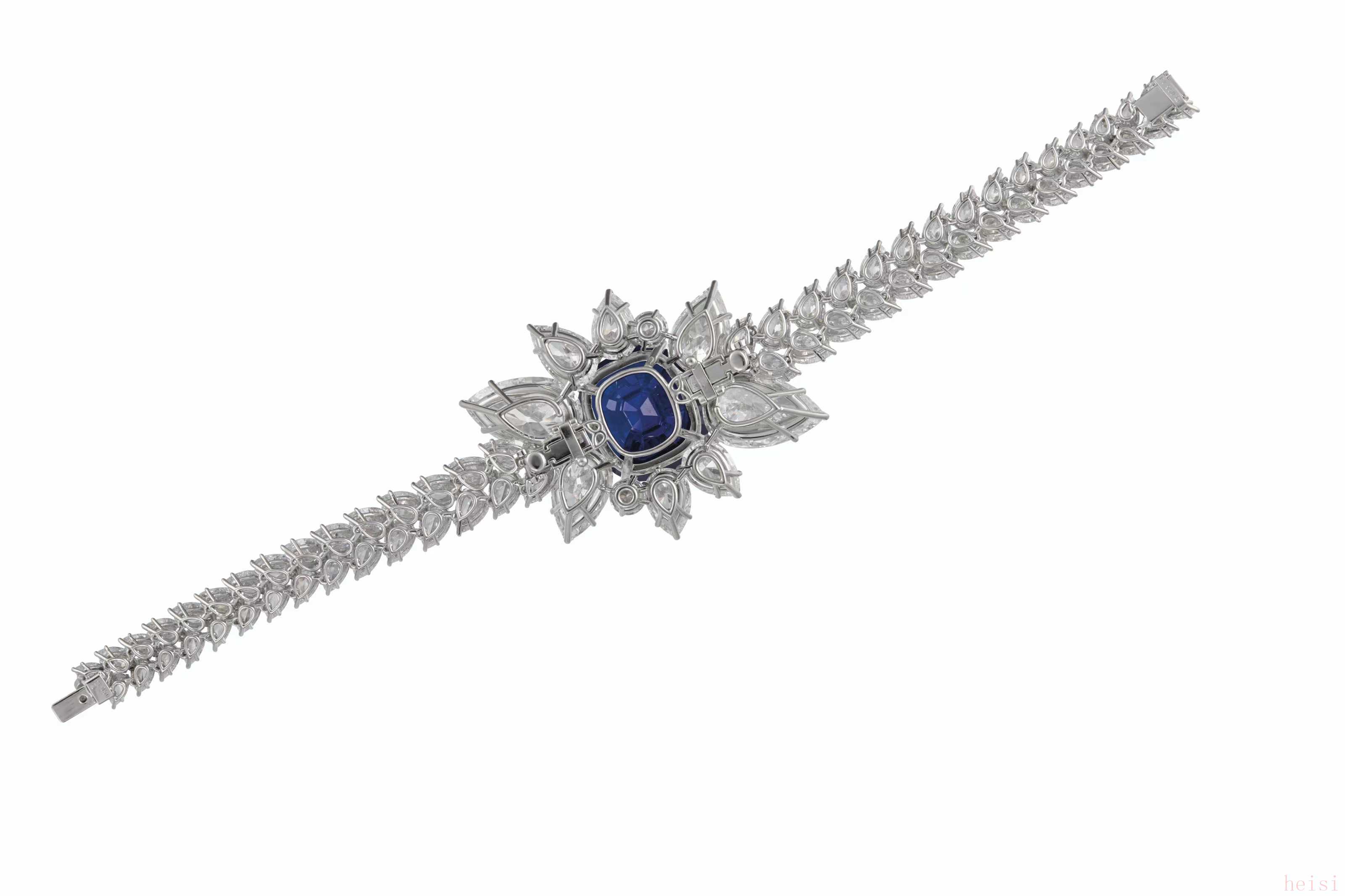 雖然這款手鐲可能不是最昂貴的,但它肯定是最令人印象深刻和最稀有的手鐲之一。這是我們最好的女士藍(lán)寶石和鉆石手鏈的首選。大顆主石周圍環(huán)繞著總共 79 顆重約 1.61 克拉的鉆石。