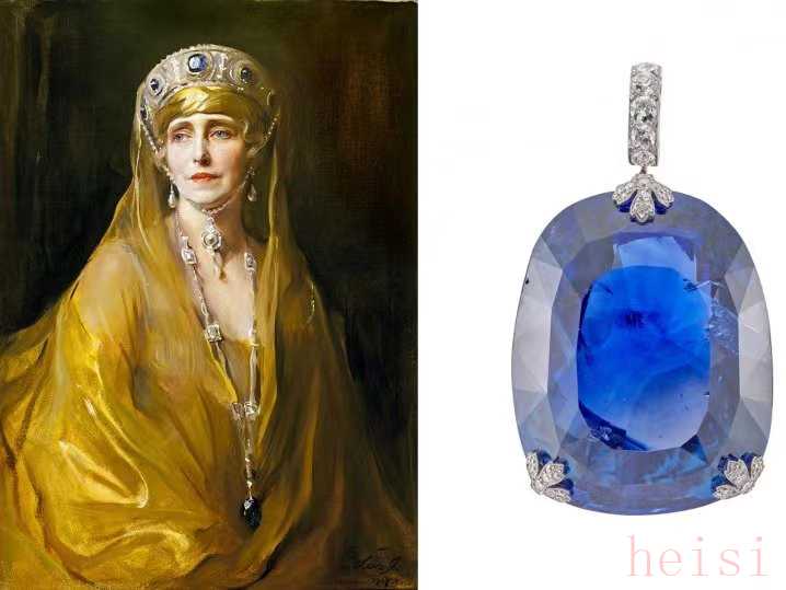 它于1913年在卡地亞的工作室首次被發(fā)現(xiàn)。這條吊墜項(xiàng)鏈?zhǔn)鞘澜缥宕笏{(lán)寶石之一,重 478.68 克拉。上一次拍賣是在2003年的佳士得,售價(jià)為2,105,667美元。在成為希臘王室收藏的一部分之前,它于1947年出售給海瑞溫斯頓。