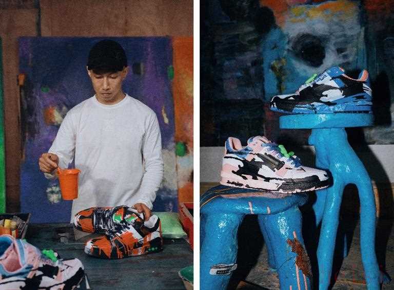 由藝術(shù)家周軼倫創(chuàng)作的兩款LV Trainer運(yùn)動(dòng)鞋以流淌的顏料取代常見的設(shè)計(jì)語言,使得作品呈現(xiàn)出鮮活的未完成狀態(tài)。它們像是被藝術(shù)家隨意擺放在工作室,偶然參與到繪畫和雕塑的創(chuàng)作過程中,成為藝術(shù)演繹的一部分。球鞋被穿在腳上的時(shí)刻,才是藝術(shù)品真正被完成的瞬間。兩款球鞋均由路易威登位于意大利的Fiesso d’Artico制鞋工坊進(jìn)行制作與手繪,手工暈染的漸變效果與流動(dòng)的顏料交織,讓鞋面產(chǎn)生速度感的視錯(cuò)覺。以手捏橡皮泥為原型的品牌標(biāo)志被固定在鞋帶上,于細(xì)節(jié)處增添活潑俏皮。周軼倫為兩款LV Trainer運(yùn)動(dòng)鞋分別命名為42.5°C(橙黑配色)和-8.6°C(粉藍(lán)配色),旨在讓公眾更關(guān)注氣候議題。