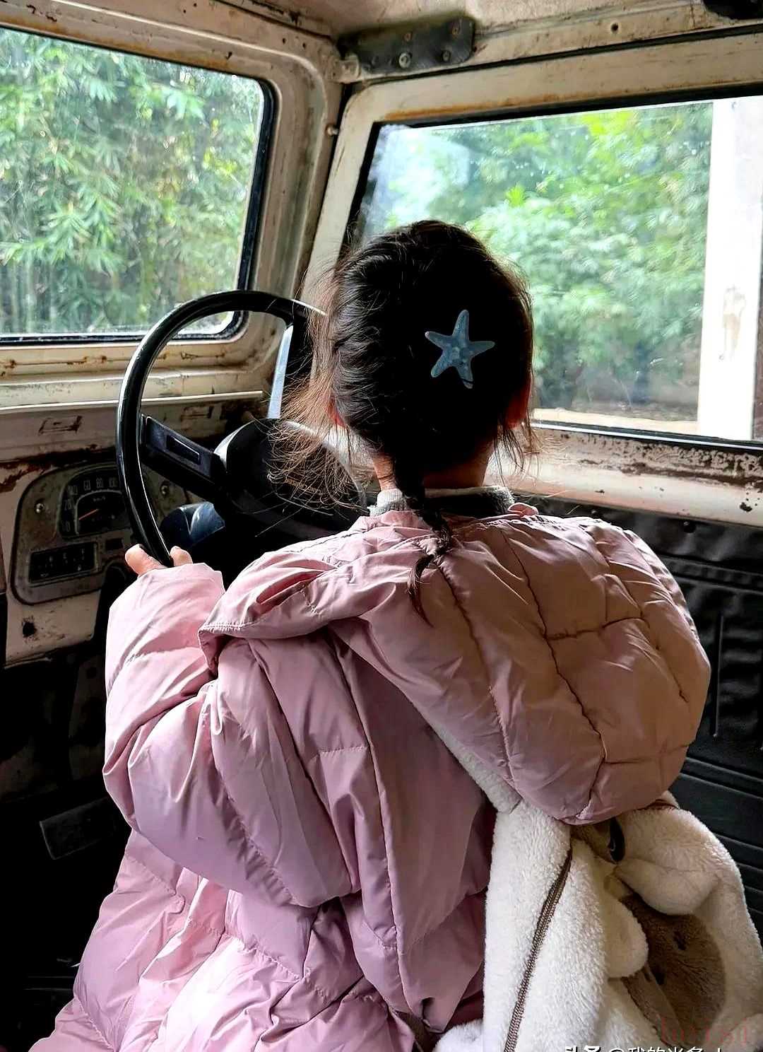 畫面里,小丫頭扎著蜈蚣辮,帽子邊一圈毛絨絨,臉埋在爸爸肩膀,只露出一雙眼睛。