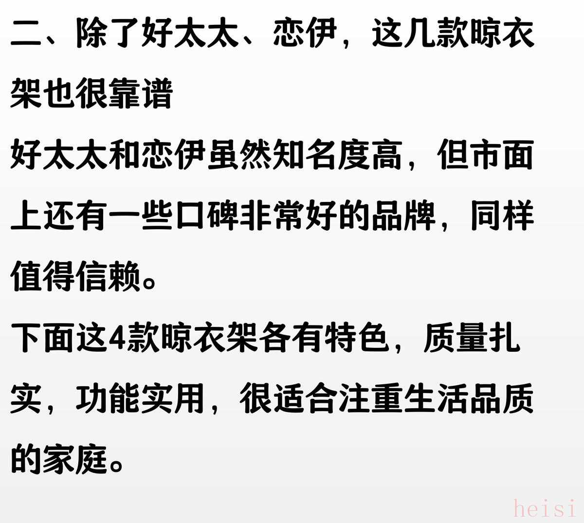 "推薦關(guān)注品牌:" 市面上有眾多品牌生產(chǎn)此類產(chǎn)品,除了好太太、戀伊,可以關(guān)注一些專注于晾衣架或家居收納