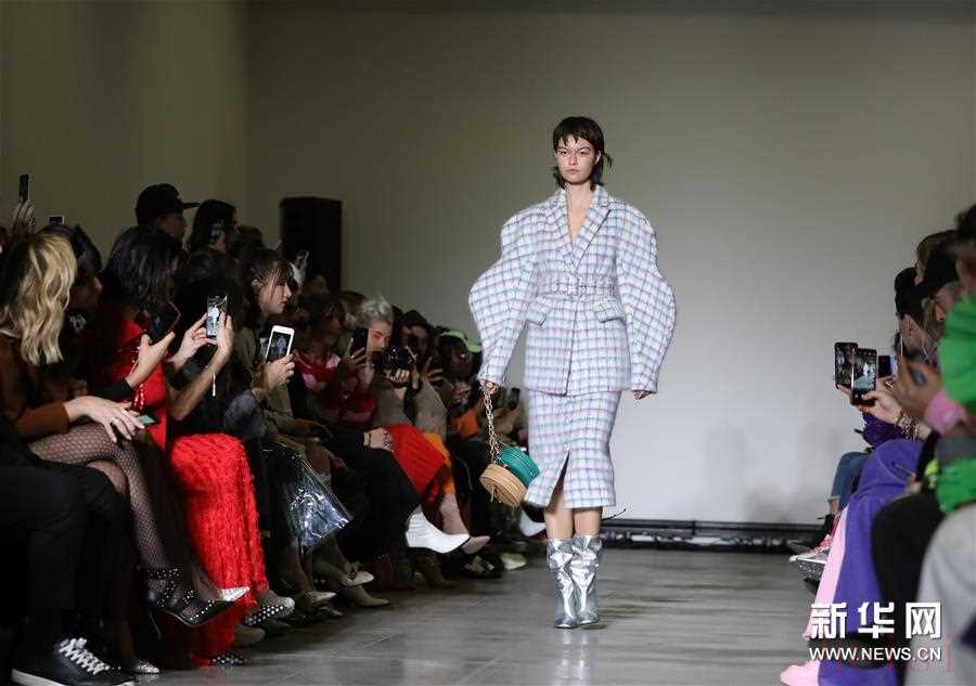 2月20日,在意大利米蘭,模特在米蘭時(shí)裝周上展示ANNAKIKI品牌時(shí)裝。新華社記者程婷婷攝
