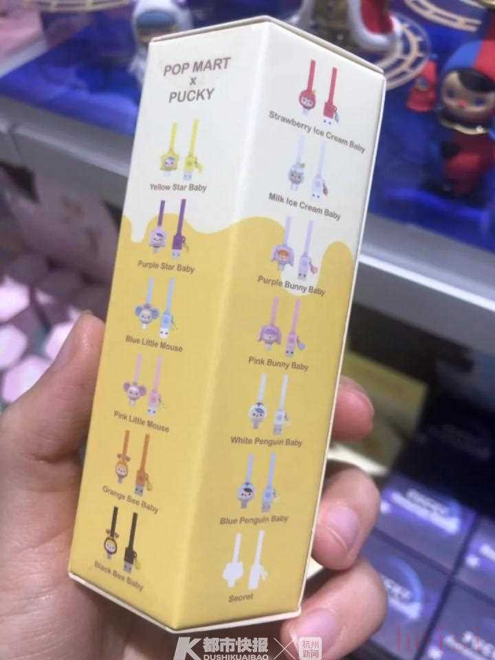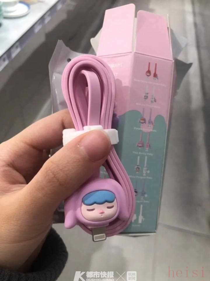 還有個(gè)姑娘買了一根畢奇的手機(jī)充電線,有12個(gè)常規(guī)款加上1個(gè)隱藏款,標(biāo)價(jià)39元。買單時(shí),邊上的姑娘也被種草,折回貨架買了一個(gè)。