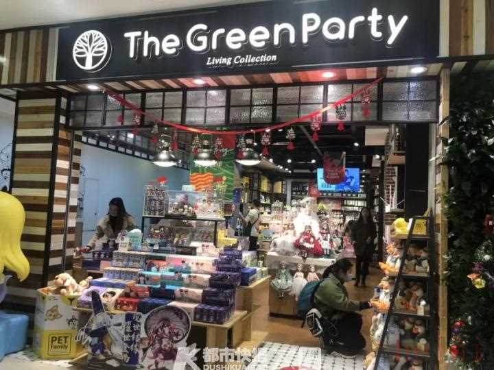 在湖濱銀泰泡泡瑪特的正對面,還有一家叫做“The Green Party”的潮玩館,靠近門口最顯眼處的貨架上陳列的依舊是盲盒,走進(jìn)去有3排貨架的盲盒。再往北走100米,還有一家晨光文具旗下的“九木雜物社”,陳列了4排貨架的盲盒。
