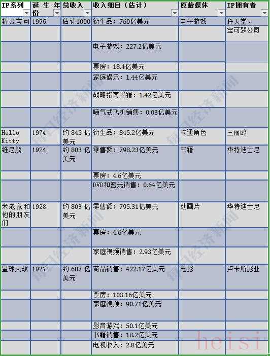 根據(jù)數(shù)據(jù),全球最賣座的三大IP分別是精靈寶可夢(mèng)、Hello Kitty和維尼熊,他們的總收入分別為約1000億美元、845億美元和803億美元,主要盈利來源各不相同,原始媒體也各不相同。作為誕生年份最近的精靈寶可夢(mèng),其主要收入形式也多達(dá)衍生品、電子游戲、家庭娛樂等6項(xiàng)。不論原始誕生狀態(tài)是電子游戲、卡通角色、書籍、動(dòng)畫片還是電影,只要受觀眾歡迎,都有可能成長為全球賣座影片。