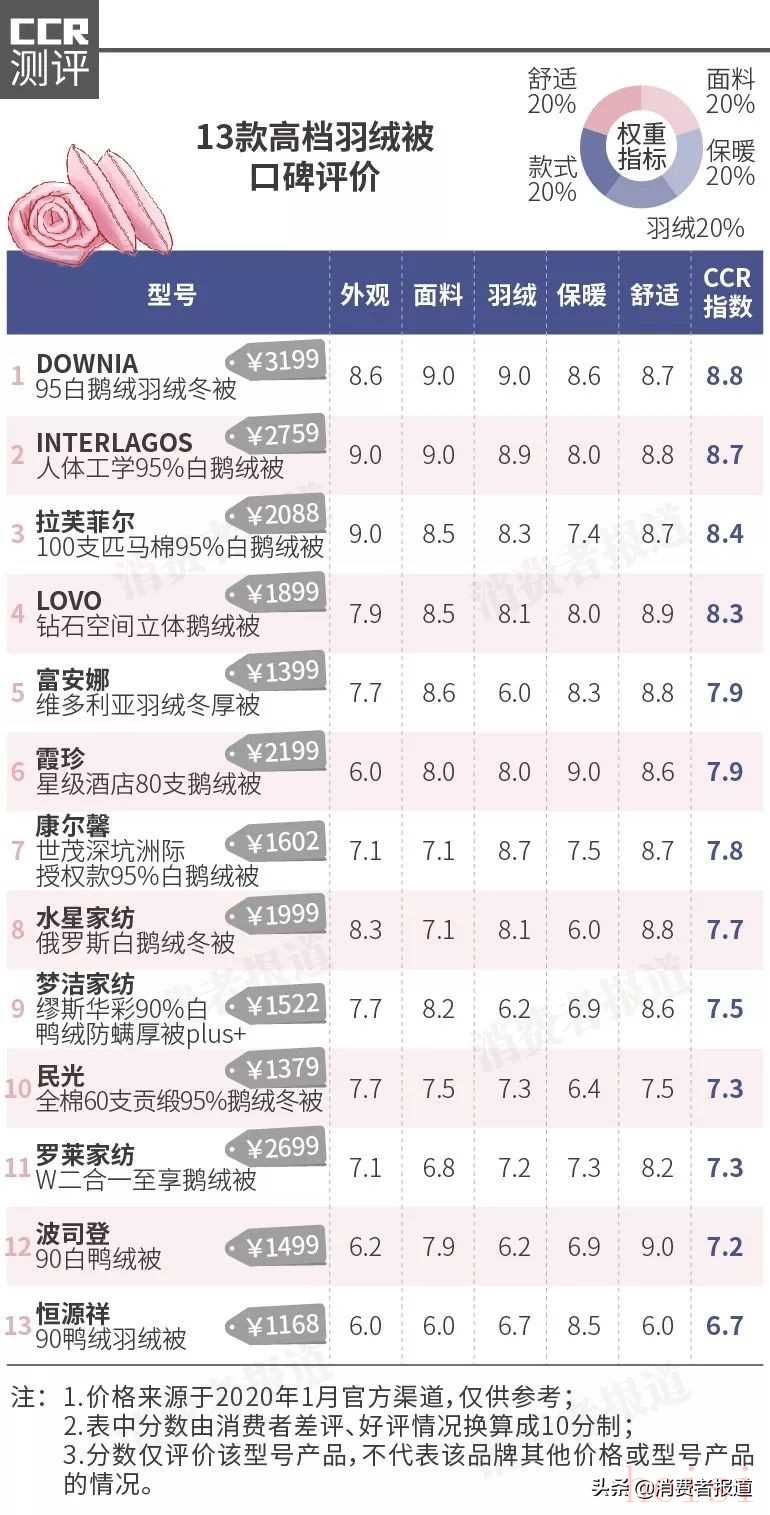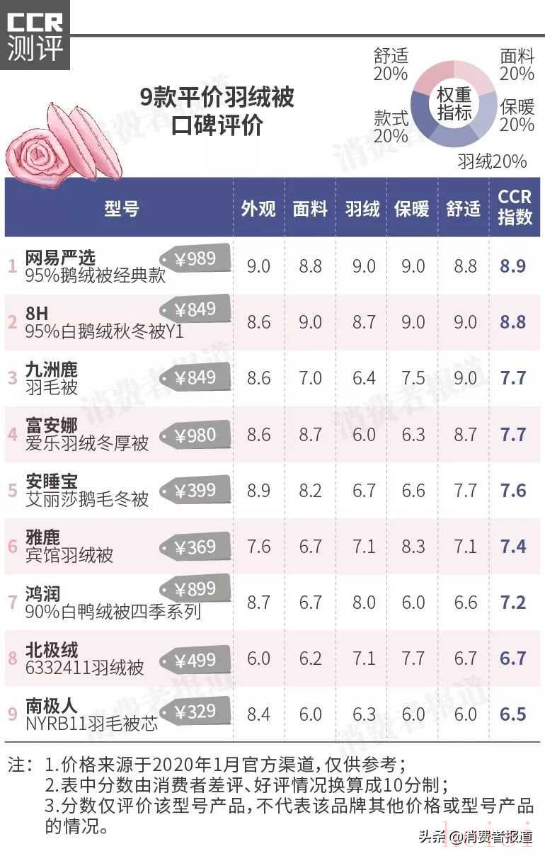 2020年2月,《消費(fèi)者報(bào)道》匯總了京東、天貓上熱銷的22款羽絨被的評價(jià)情況,對約1.6萬條消費(fèi)者評價(jià)數(shù)據(jù)進(jìn)行了分析和評分。