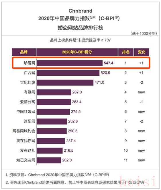 中新網(wǎng)4月22日電 今日,2020中國品牌力指數(shù)(China Brand Power Index,簡稱C-BPI,下同)排行榜在全網(wǎng)公布,珍愛網(wǎng)以547.4的高分榮獲2020年C-BPI婚戀網(wǎng)站第一品牌,這也是珍愛網(wǎng)自2013年以來第六次榮獲行業(yè)品牌力第一,足以證明市場對珍愛網(wǎng)多年深耕婚戀領(lǐng)域的認(rèn)可。