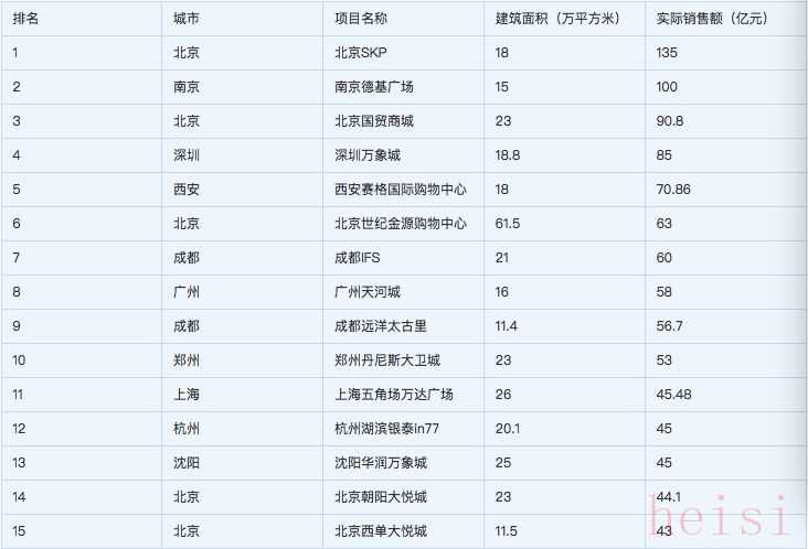 | 2018年全國(guó)商場(chǎng)銷(xiāo)售額排名
