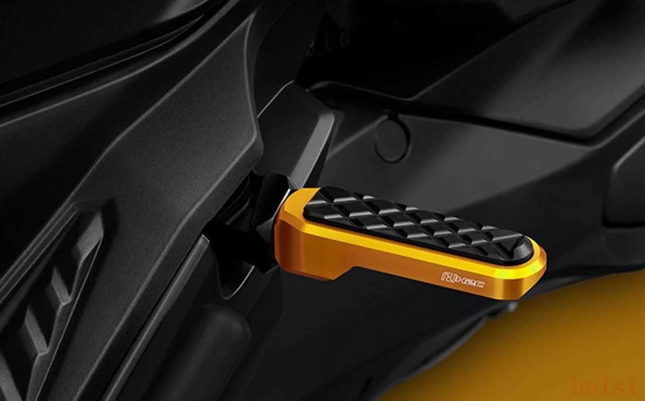 前腳踏板以及后腳踏上分別使用了由H2C改裝品牌提供的鋁合金件,顏色上也盡可能還原到與?hlins同一色調(diào)。不過就腳踏的搭配而言,小編個(gè)人覺得后腳踏確實(shí)不錯(cuò),但前腳踏看著確實(shí)有些“殺馬特”了。