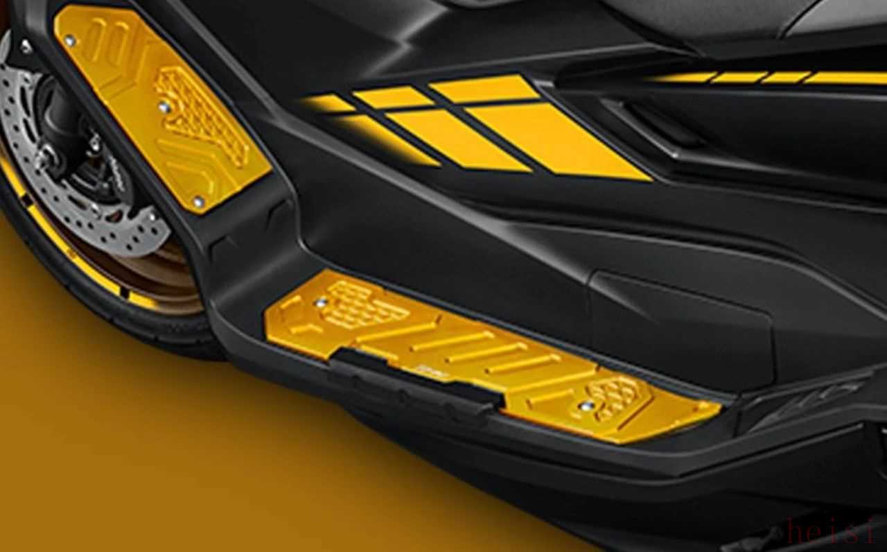 首先從外觀上說起,這臺(tái)?hlins聯(lián)名版車型基于最新款NSS350而來。配色上整車以全黑為底色,在車身兩側(cè)以及油箱兩側(cè)都有黃色線條的加入,甚至輪胎上也有黃色漸變的輪轂貼。此外,車頭兩側(cè)、前擋泥板以及后座兩側(cè)都有?hlins的專屬標(biāo)志貼畫,不得不說這次聯(lián)名版比XMAX確實(shí)要更顯運(yùn)動(dòng)。