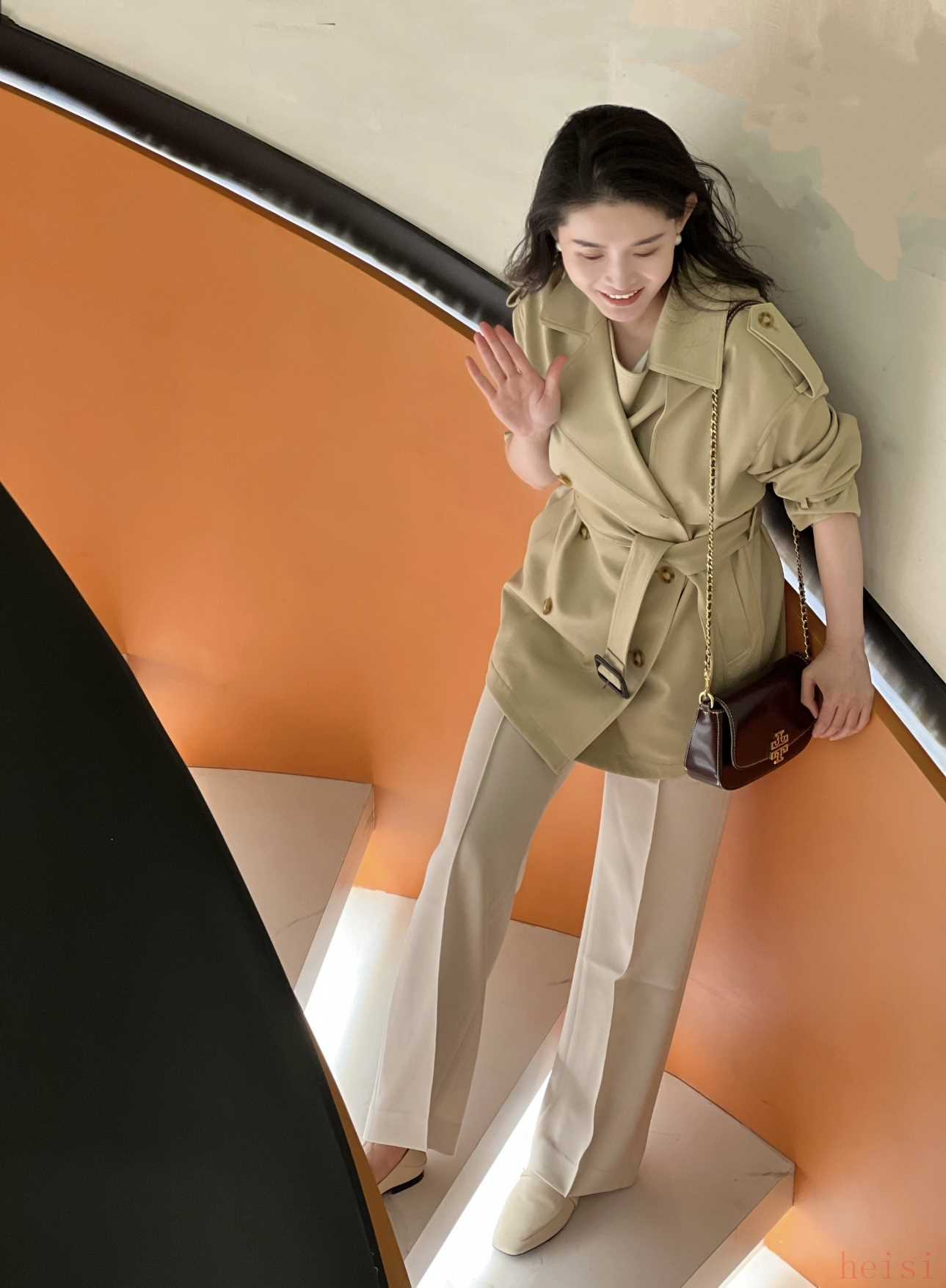 風(fēng)衣是詮釋“姐系”穿搭的有力單品,秋天是風(fēng)衣的季節(jié),配上質(zhì)感西褲和高跟鞋,OVV主打的一個(gè)溫柔精英風(fēng)格,干練且干脆的利落美。