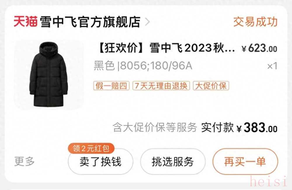 張夏今年雙11購買的波司登一款輕薄鵝絨羽絨服售價419元,同款產品在今年7月價格則為699元。