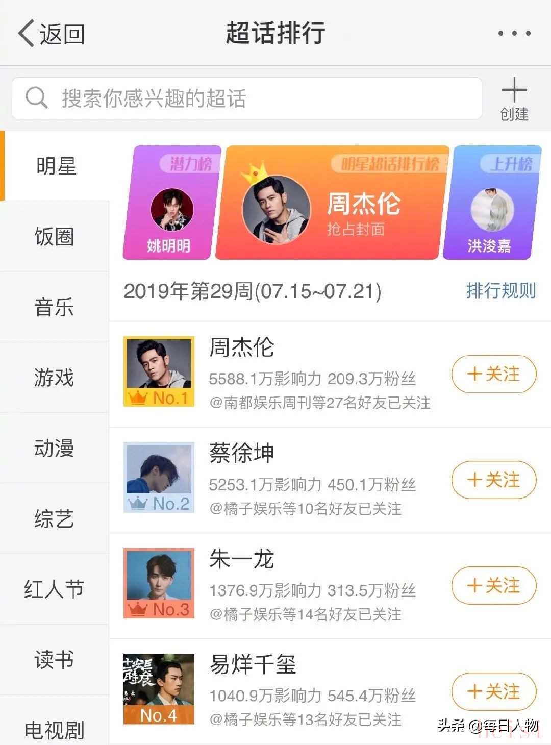 ▲ 2019年7月,粉絲熱血打榜將周杰倫送上了新浪微博“明星超話”榜首。圖 / 網(wǎng)絡