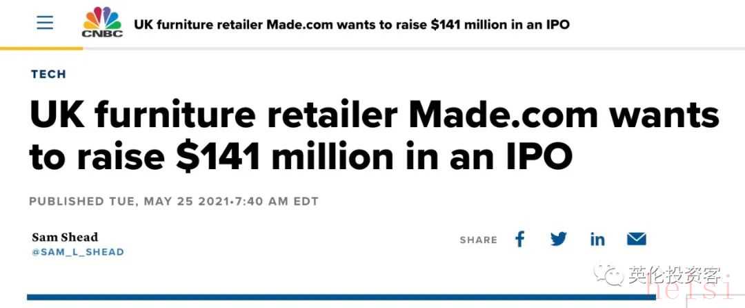 正因?yàn)橐咔槠陂g銷量暴漲,Made.com于2021年6月正式在倫敦證交所掛牌交易,一時(shí)間風(fēng)光無(wú)右。
