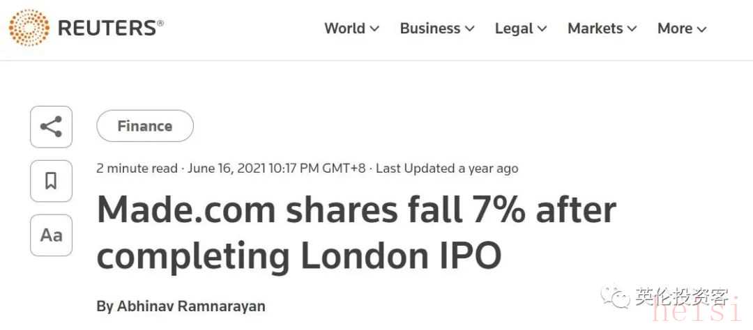 在完成IPO的當(dāng)天,Made.com被曝出股價(jià)立即下跌了7%。