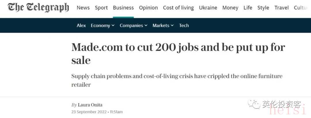2022年9月24日,Made.com在一份聲明中宣布,受成本上升、供應(yīng)鏈緊張、消費(fèi)者信心下降以及商品打折的影響,該公司計(jì)劃裁員并考慮出售。