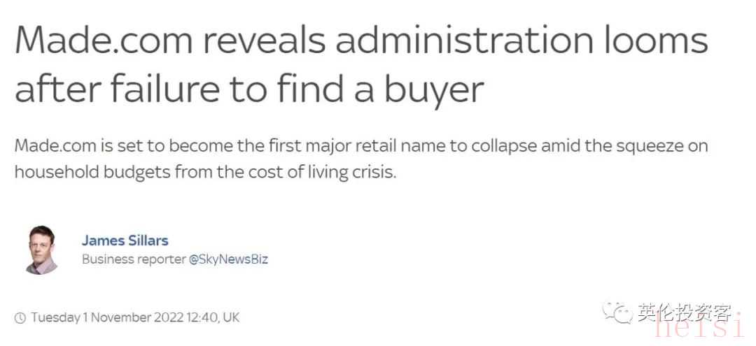 2022年10月25日,Made.com宣布與潛在買家談判失敗,并警告稱如果在現(xiàn)金耗盡之前無(wú)法籌集到資金,它將“采取適當(dāng)措施為債權(quán)人保留價(jià)值”。