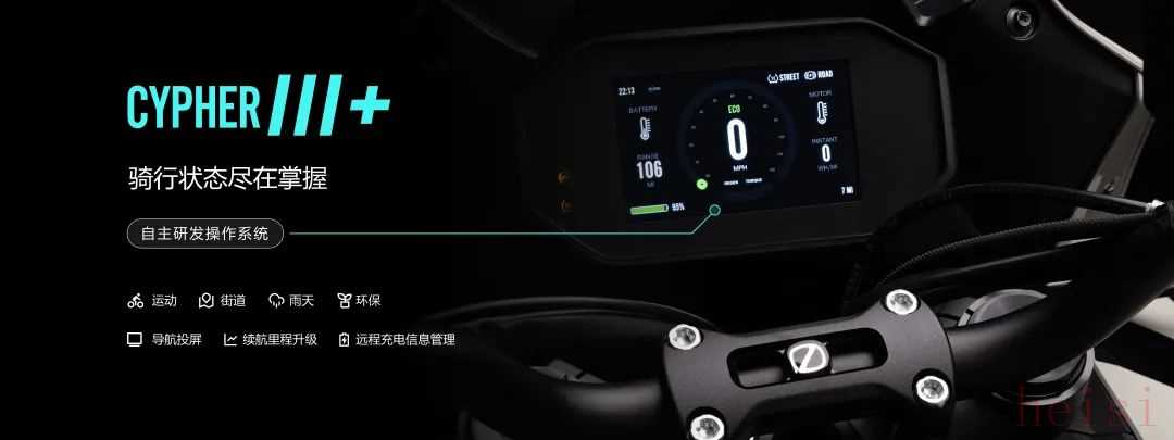 SR/S還搭載了博世IMU慣性傳感器,并提供了5種駕駛模式幫助騎手更好的駕馭這臺猛獸,分別為運動、街道、雨天、節(jié)能和自定義,每個模式都可調(diào)節(jié)不同的動力曲線、牽引力控制系統(tǒng)和動能回收水平。另外這款車還有彎道ABS、巡航控制、彩色TFT液晶儀表等配置,支持藍牙連接到ZERO手機APP。Cypher 3操作系統(tǒng)還可提供導(dǎo)航投屏、續(xù)航里程升級、遠程充電信息管理等多種功能。