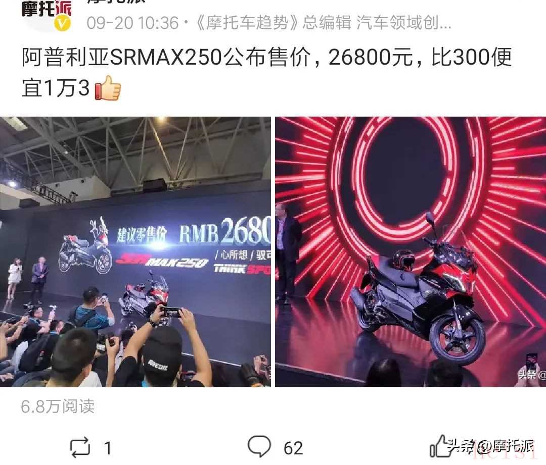 為了降低SR MAX的價格門檻,宗申阿普利亞于2019年重慶摩博會上,發(fā)布了基于SR MAX300向下延伸的車型SRMAX250,特別是在26800元的售價曝光后,摩友們給予了一定的好評和期待。