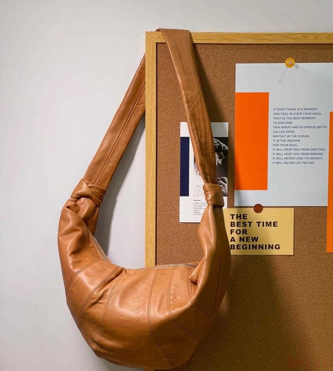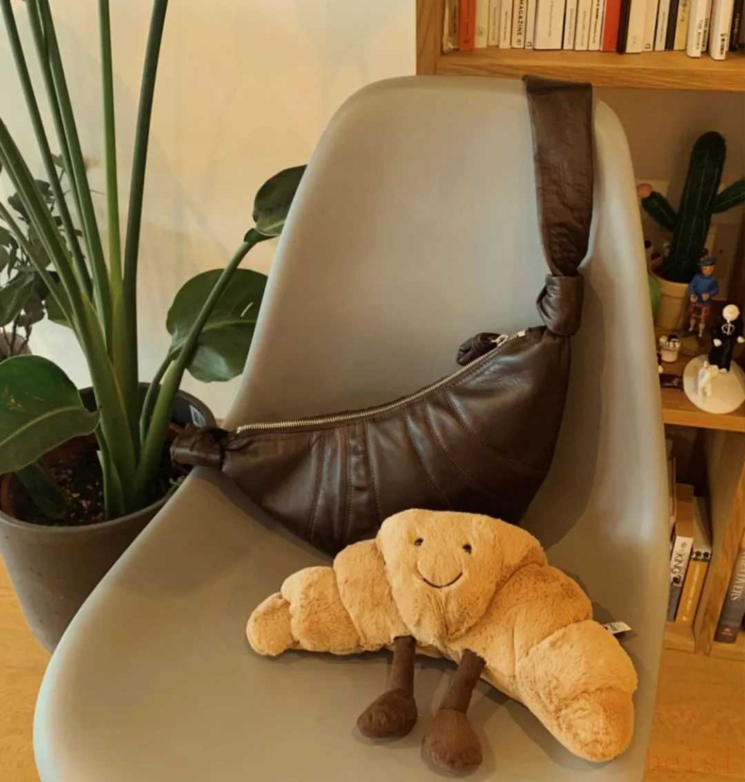 他們家的手袋也有這樣的特點(diǎn),比如江江推薦的這款“牛角包”。Croissant Bag由柔軟的納帕羔羊皮制成,質(zhì)地會(huì)隨著時(shí)間變得越來越柔軟,有種陪你成長的感覺。這款牛角包相對(duì)上面來說,斜挎的設(shè)計(jì)更容易攜帶一點(diǎn)點(diǎn),搭配方法很多元,通勤和運(yùn)動(dòng)風(fēng)都能組合。