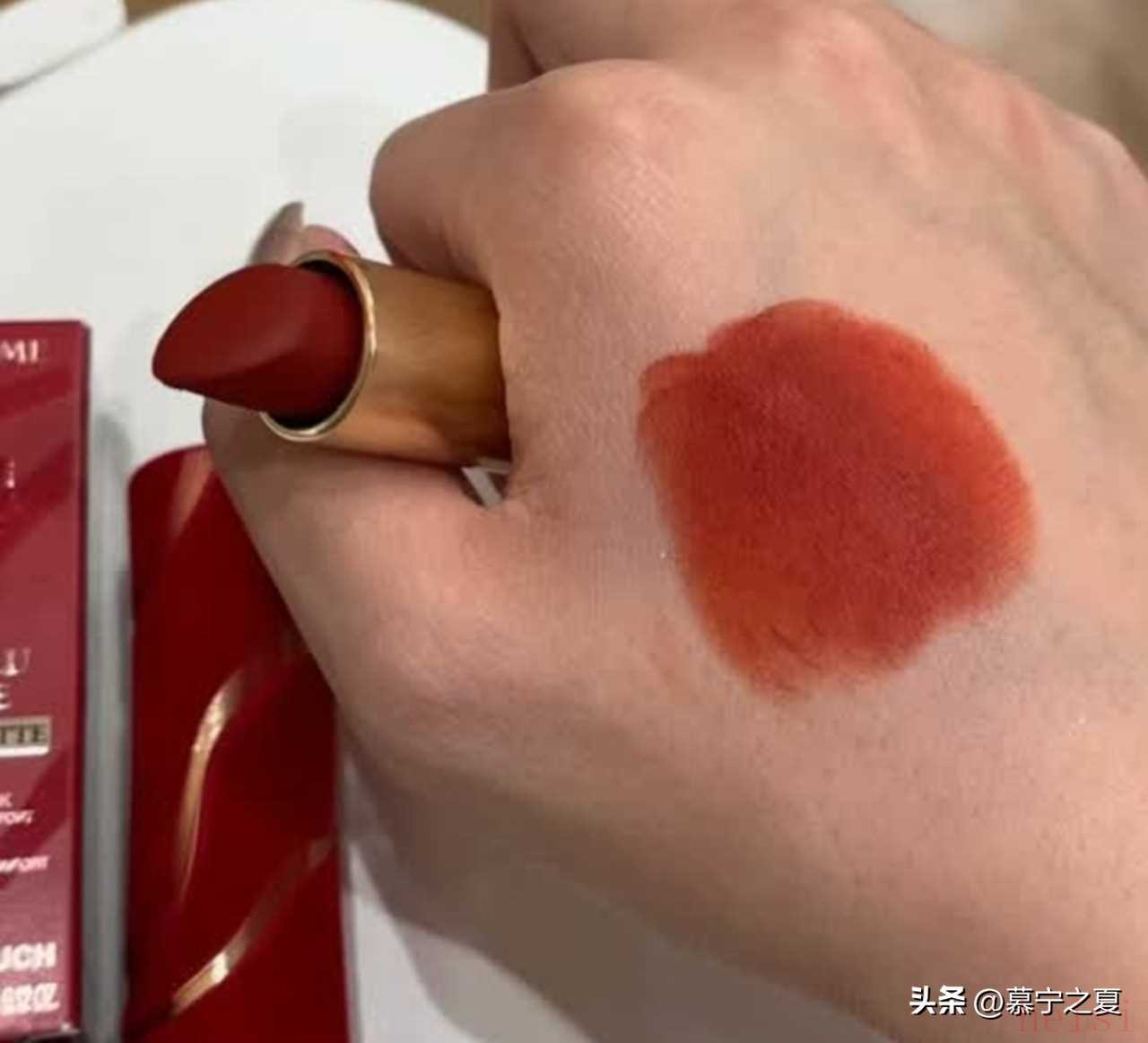色調(diào)上是紅色偏暗,看著平平無奇,但涂上唇后顏色超好看的,啞光霧面感,日常薄涂很顯氣色,化妝時厚涂又很顯氣場。