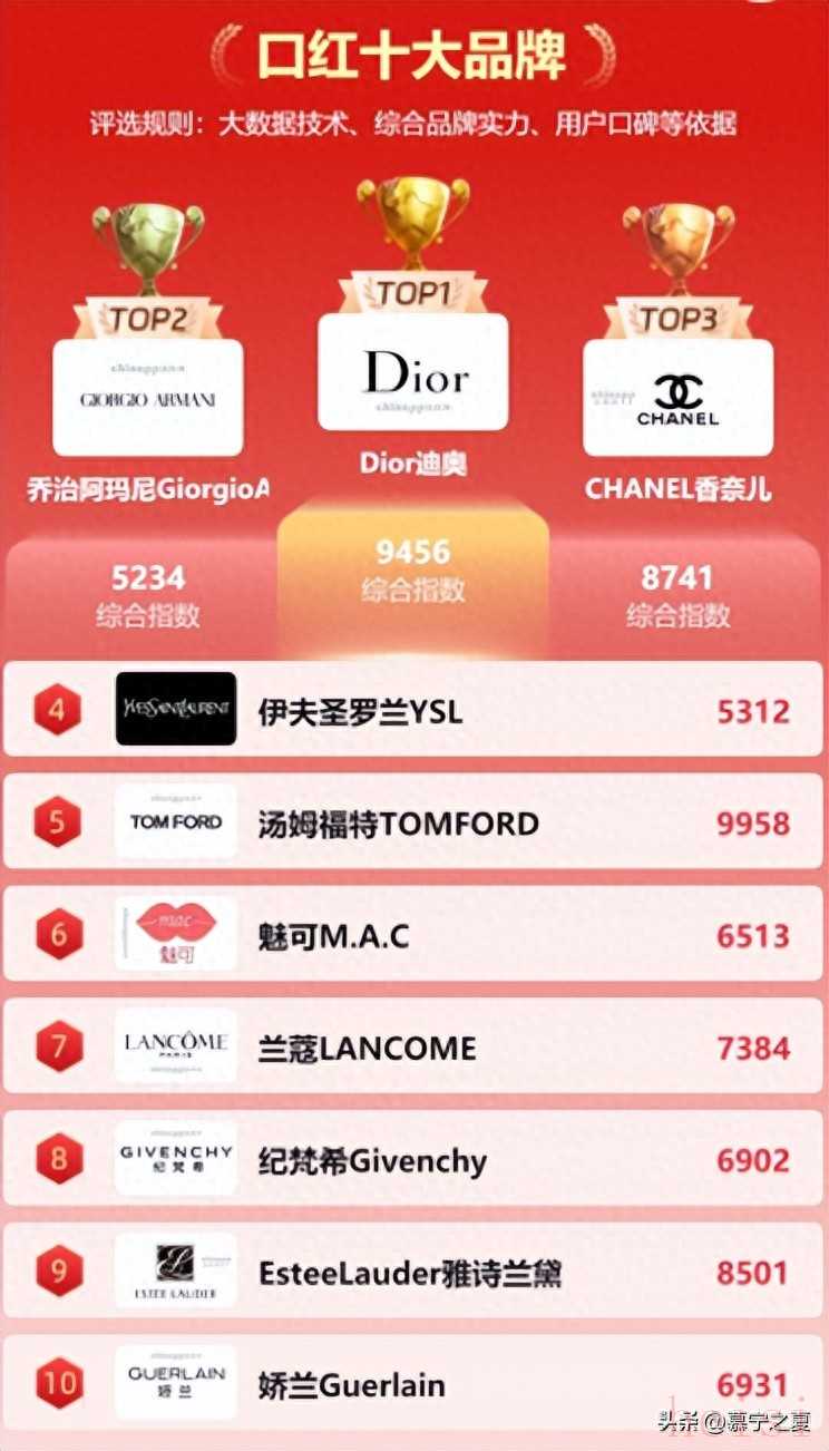"口紅推薦排行榜前十名(含迪奧、蘭蔻、YSL等):"