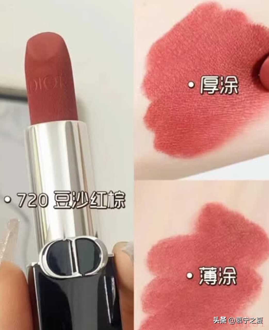 相比999大紅色那款,我更喜歡720這款,它的色調(diào)更柔和,不會紅得那么濃郁,帶一點棕調(diào),更適合淡妝用、日常素顏用。