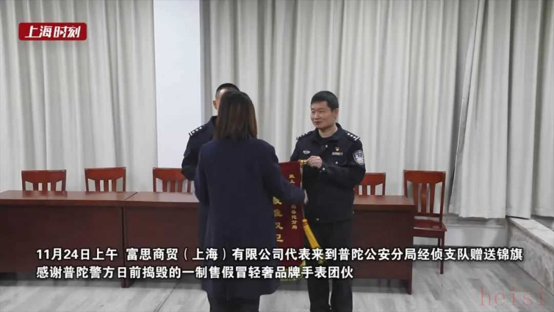 今天上午,富思商貿(mào)(上海)有限公司代表專門趕到普陀公安分局經(jīng)偵支隊,向民警贈送錦旗,感謝普陀警方搗毀制售假冒輕奢品牌手表團伙,維護了品牌方的合法權益。