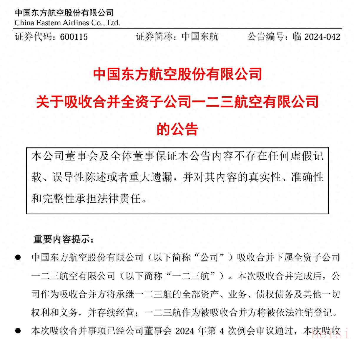 我們從東航發(fā)布的關(guān)于吸收合并其全資子公司一二三航空有限公司(OTT)的公告說起,這是一個典型的企業(yè)內(nèi)部重組案例。我們可以從以下幾個角度來分析和解讀: