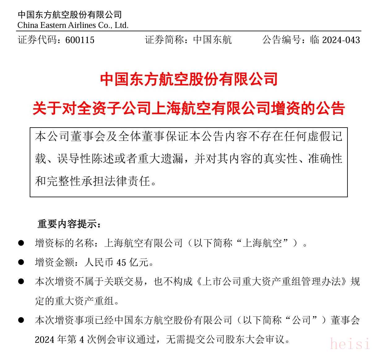 并且,形成強烈對比的是,東航發(fā)布吸收合并一二三航空公告的同時,還發(fā)布了另一份公告——對上海航空增資45億元。一注銷一注資,一字之差,厚此薄彼,徒嘆世態(tài)炎涼。