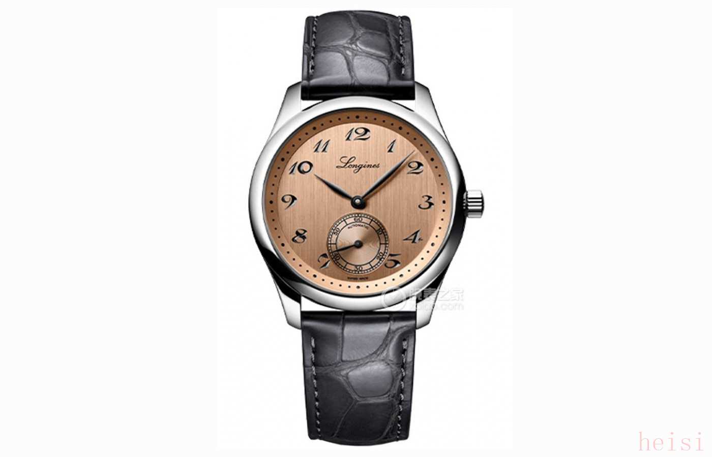 腕表點評:38.5毫米表徑的浪琴名匠系列L2.843.4.93.2腕表是浪琴190周年紀(jì)念腕表的基礎(chǔ)上的進階款式,作為男性正裝腕表來說是黃金比例,10.2毫米的纖薄厚度也可以自由伸縮進衣袖。小三針表盤的顏色更加深邃,也更加增添整體的復(fù)古意味。精鋼表殼全部拋光處理,偏向于古銅色的三文魚盤面,黑色柳葉型指針搭配復(fù)古篆刻的寶璣字體的阿拉伯?dāng)?shù)字時標(biāo),外部環(huán)繞軌道式刻度圈,小三針的設(shè)計以及垂直拉絲的盤面潤飾整體更顯復(fù)古。內(nèi)部搭載的是L893.5自動機芯,硅游絲的加持下防磁的性能更加穩(wěn)定。25,200次/小時的振頻下具備長達72小時的動力儲備能力。深灰色鱷魚皮表帶的搭配更加能夠突顯表盤的精彩細節(jié)。