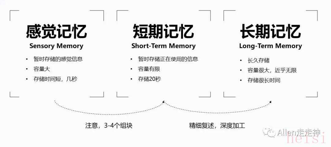 感覺記憶可以被加工成3-4個組塊,變成短期記憶STM,再經(jīng)過精細(xì)復(fù)述和深度加工后,就有可能形成長期記憶LTM。