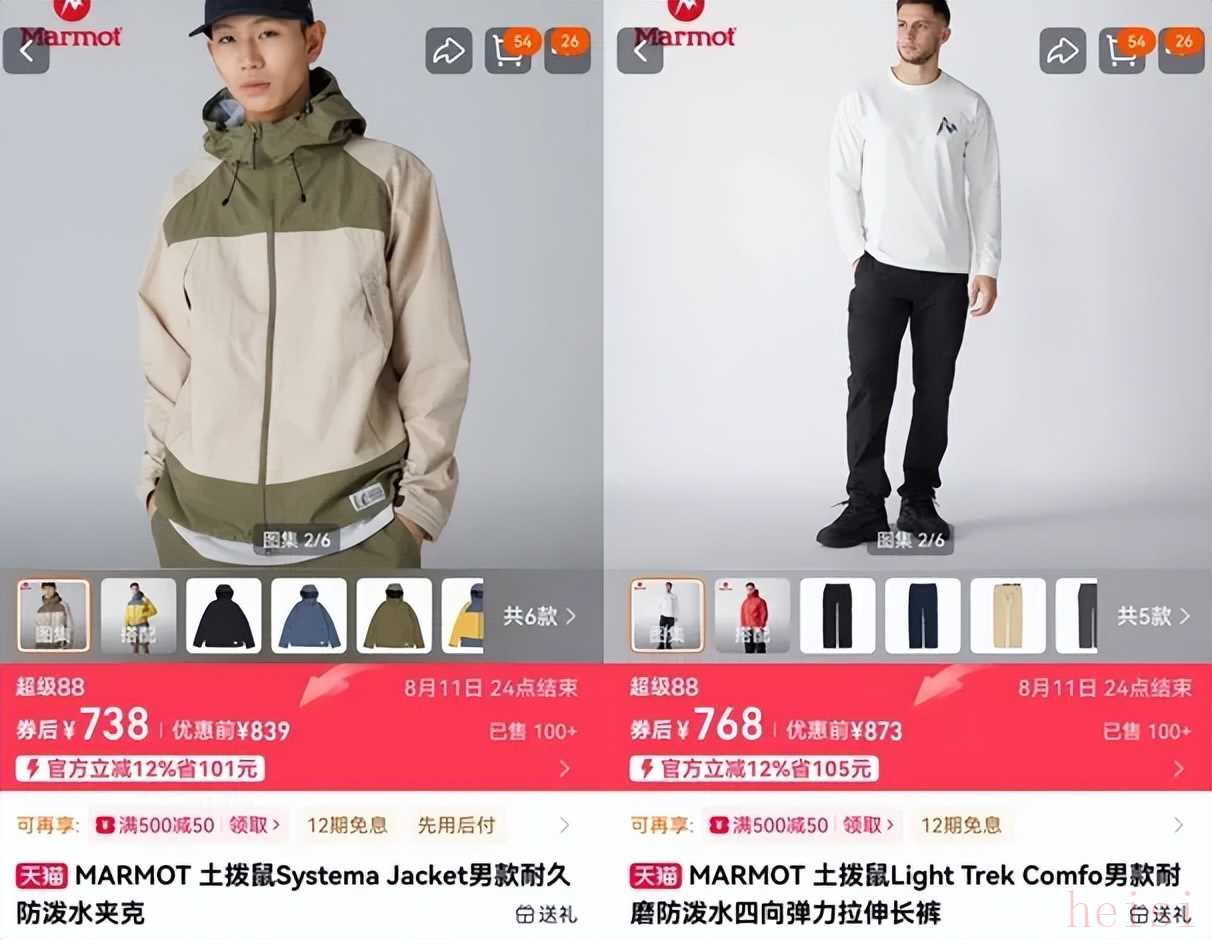 Marmot堅(jiān)守中間價(jià)位 圖源:天貓