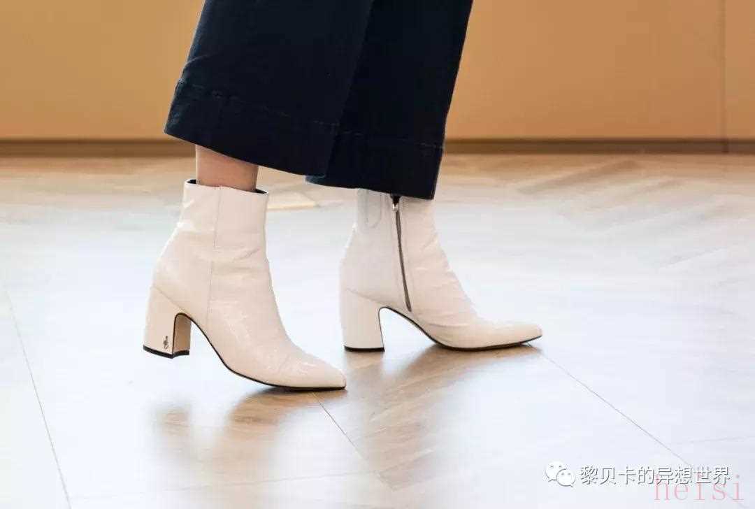 去年卡卡寫了小白靴,今年特別想買一雙。當時逛燒包,鎖定了兩雙好看的小白靴,另一雙是細跟的,感覺不太實用,這雙又剛好打八折,果斷入手了這雙粗跟。▼