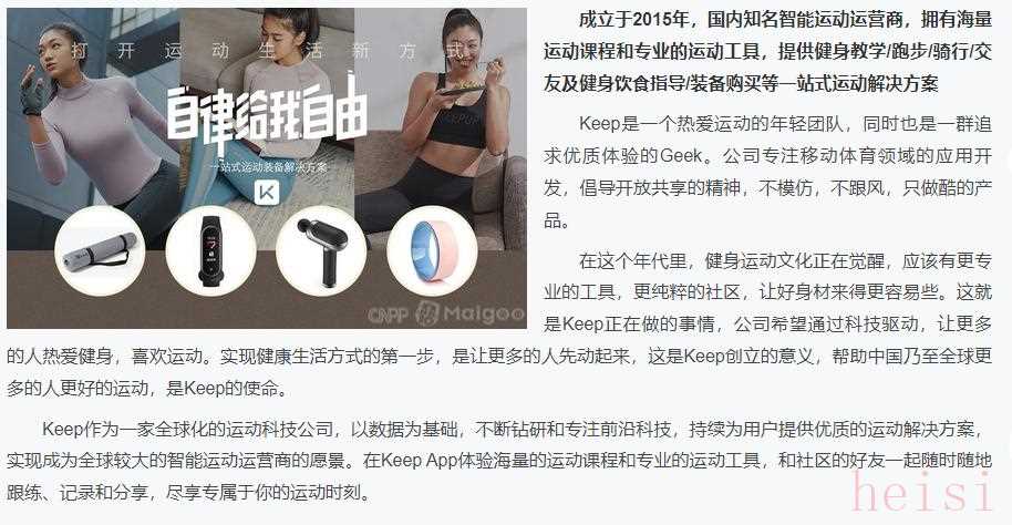 跳繩品牌排名第六的是keep,KEEP歸屬北京卡路里信息技術(shù)有限公司,以APP起家,打造網(wǎng)上運(yùn)動(dòng)健身教學(xué)。
