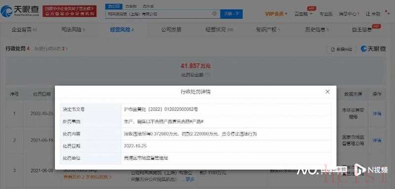 據(jù)天眼查信息顯示,珂茜芙商貿(mào)有4個(gè)行政處罰信息,處罰總金額超41.8萬元,值得一提的是,這4次行政處罰的處罰事由均涉及“生產(chǎn)、銷售以不合格產(chǎn)品冒充合格#產(chǎn)品#”。