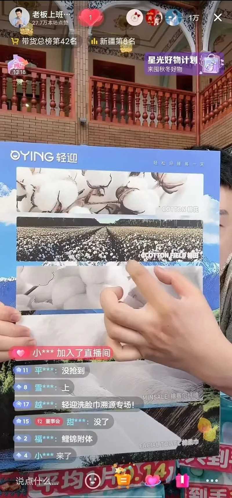 和酷安奇一樣,今年雙11,洗護(hù)品牌輕迎攜手抖音作者 @老板上班了,在新疆原產(chǎn)地開啟溯源專場直播,沖刺達(dá)成雙11大促目標(biāo)。