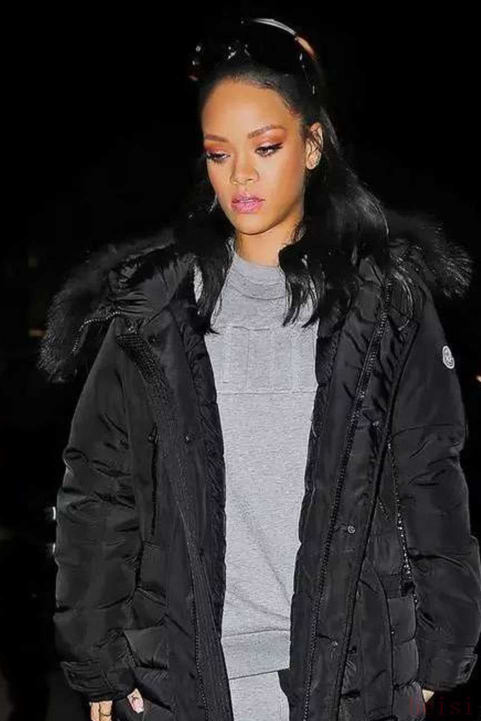 蕾哈娜身著Moncler羽絨夾克,內(nèi)搭灰色衛(wèi)衣,時(shí)尚又休閑~