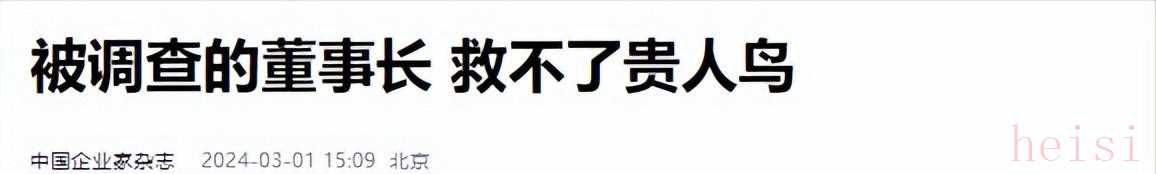 中國企業(yè)家雜志2024年3月1日關(guān)于“被調(diào)查的董事長 救不了貴人鳥”的報道