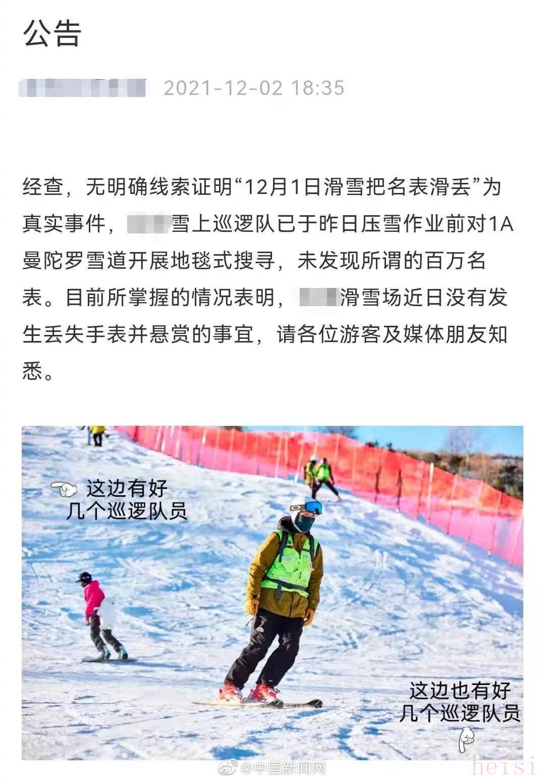 雪場回應游客滑雪丟失百萬名表