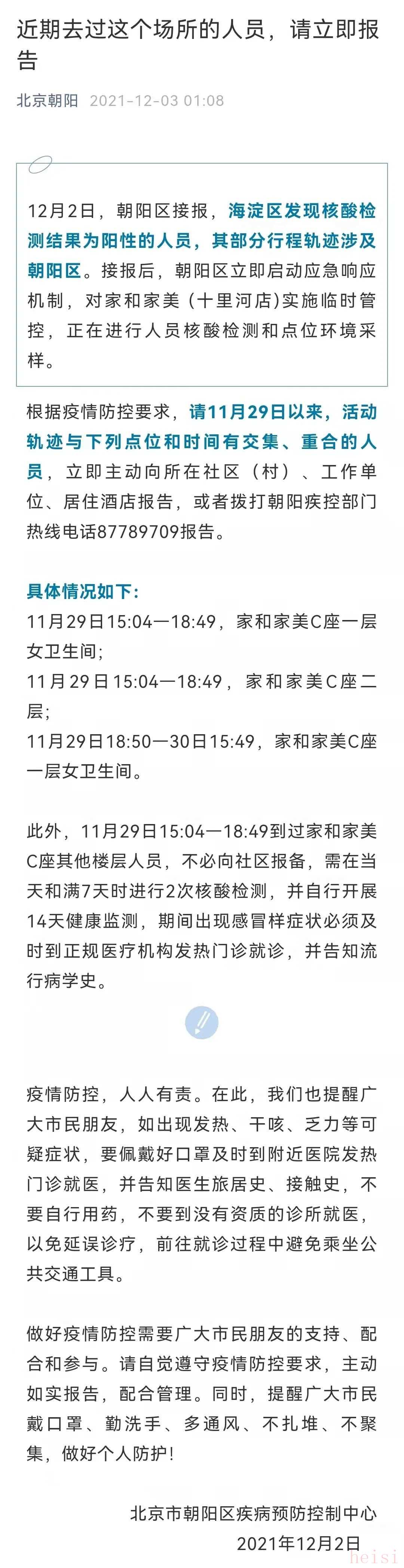 - 核酸陽性人員在朝陽軌跡公布!家和家美十里河店臨時管控