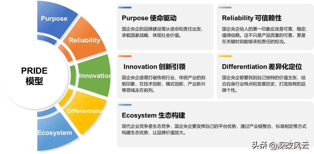 給國企央企的品牌建設建議:從這五個方面入手基于以上這些成功案例的分析,國企央企的品牌建設可以從五個方面來考慮,可以總結為"PRIDE模式":P - Purpose(使命驅動):國企央企的品牌建設必須從使命和責任出發(fā),這是與民企最大的不同。你的品牌要能夠承載國家戰(zhàn)略,體現(xiàn)社會責任,這樣才能獲得公眾的認同和支持。R - Reliability(可信賴性):國企央企給人的第一印象應該是可靠、穩(wěn)定、值得信賴。這不只是產(chǎn)品質量的可靠,更是企業(yè)行為的可預期性,是在關鍵時刻能夠承擔責任的擔當。I - Innovation(創(chuàng)新引領):現(xiàn)在的國企央企不能再給人傳統(tǒng)行業(yè)、傳統(tǒng)企業(yè)的刻板印象,必須在技術創(chuàng)新、模式創(chuàng)新、產(chǎn)業(yè)新興等領域走在前面。創(chuàng)新不僅是企業(yè)發(fā)展的需要,也是品牌年輕化的重要手段。D - Differentiation(差異化定位):每個國企央企都要找到自己獨特的價值主張,不能千篇一律。要結合自己的行業(yè)特點和發(fā)展歷史,打造獨有的品牌個性。E - Ecosystem(生態(tài)構建):現(xiàn)代企業(yè)競爭是生態(tài)競爭,國企央企要發(fā)揮自己的平臺優(yōu)勢,通過產(chǎn)業(yè)鏈整合、標準制定等方式構建生態(tài)優(yōu)勢,讓品牌價值放大。