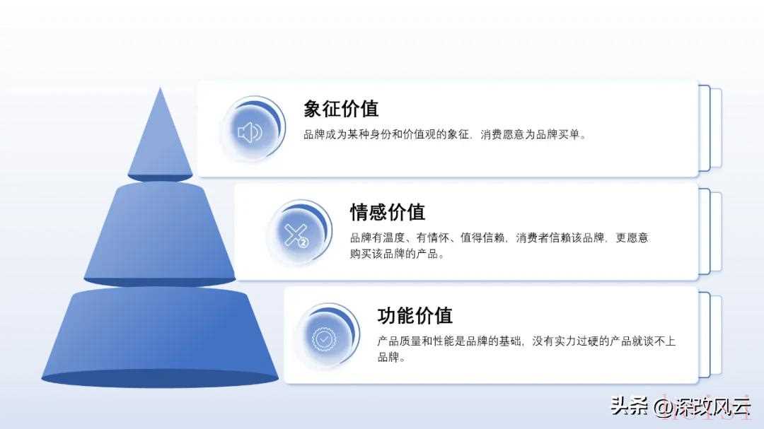 圖1 品牌價值的三個層次對國企央企來說,這三個層次都很重要,但情感價值和象征價值往往被忽視。我們企業(yè)技術不差,產(chǎn)品質量也過硬,但在品牌的情感連接和價值象征上還有很大提升空間。