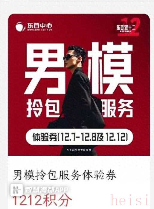 老牌百貨東百中心又出新招,1212積分可兌換“男模拎包”服務,這一獨特方式迅速吸引了廣大市民的關注與熱議,成為東街口商圈的一大賣點。